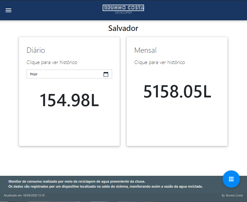 Os dados são registrados por um dispositivo localizado na saida do sistema, monitorando assim a vazão da agua reciclada. video_libraryphoto_library